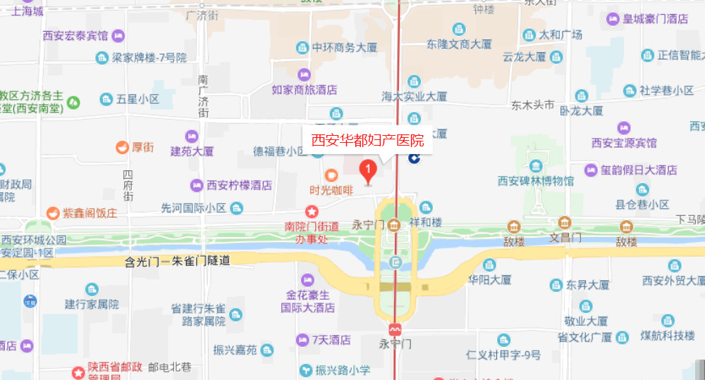 医院地址:西安市湘子庙街1号(南门里,西北角)